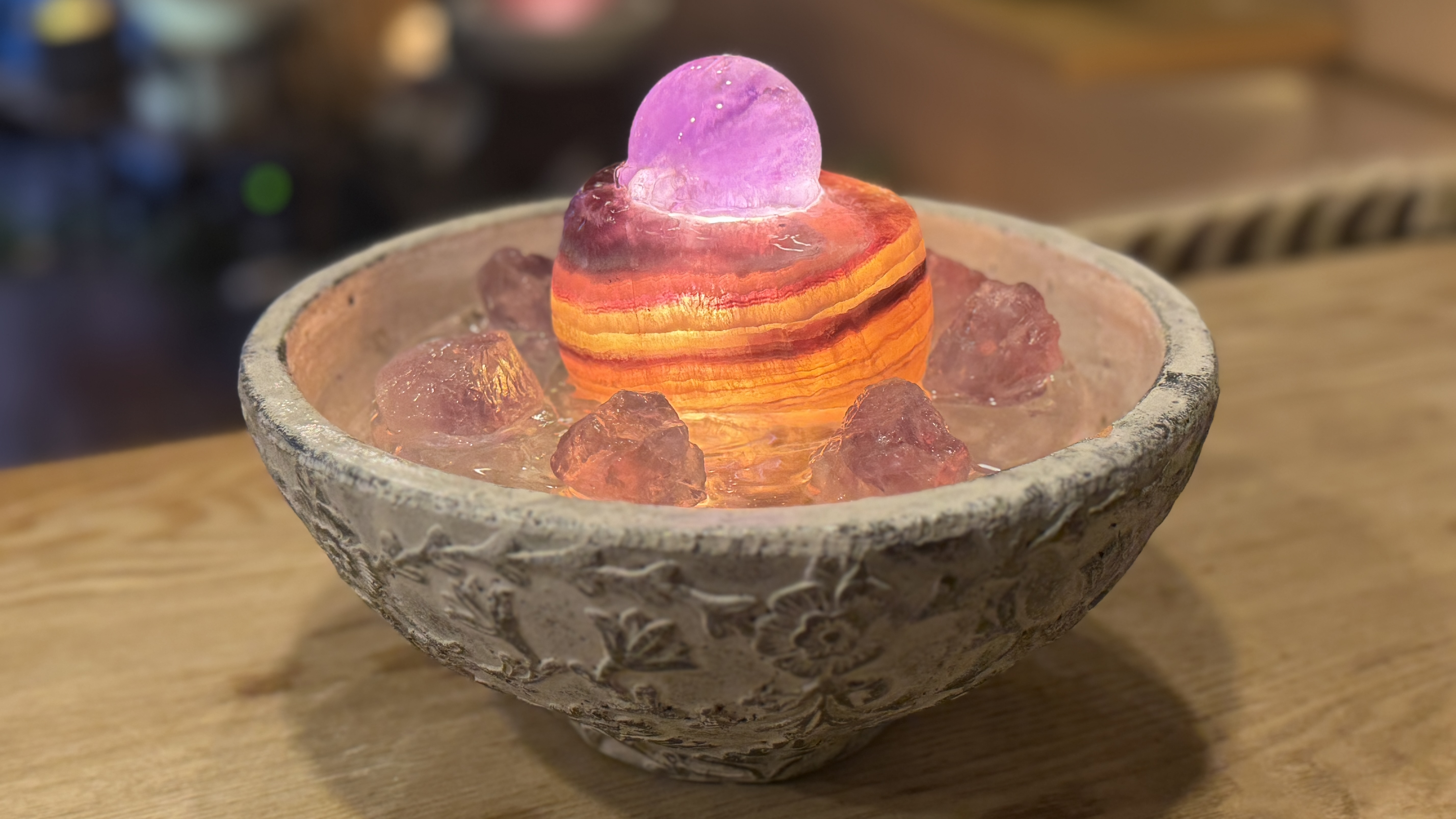 アメジスト/レインボーフローライト【AFH3944】 アメジスト/レインボーフローライト【AFH3944】 (AFH3944) 紫の静けさと、虹色の層が溶け合い、感性と理性を 同時に整える組み合わせ。 アメジストは心のノイズを鎮め、本質的な直感を呼び覚まし、 レインボーフローライトは思考の整理を柔軟な発想を促します。 迷いの多い時期や、次のステージへ進む前の「内側の調律」 に寄り添うファウンテンです。 (球体の種類)アメジスト 4.8cm (台座石の種類)レインボーフローライト (周りの小石の種類)アメジスト (器の種類)ガーデン φ25 在庫状態 : 在庫有り ¥98,000(税込) 数量