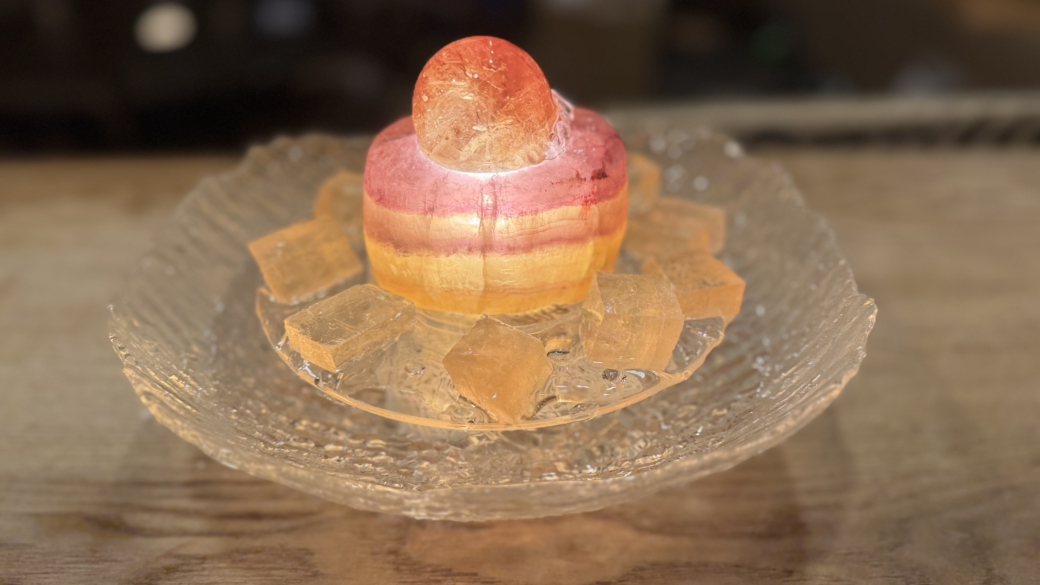 まるで夕焼けの光を閉じ込めたようなファウンテンです。