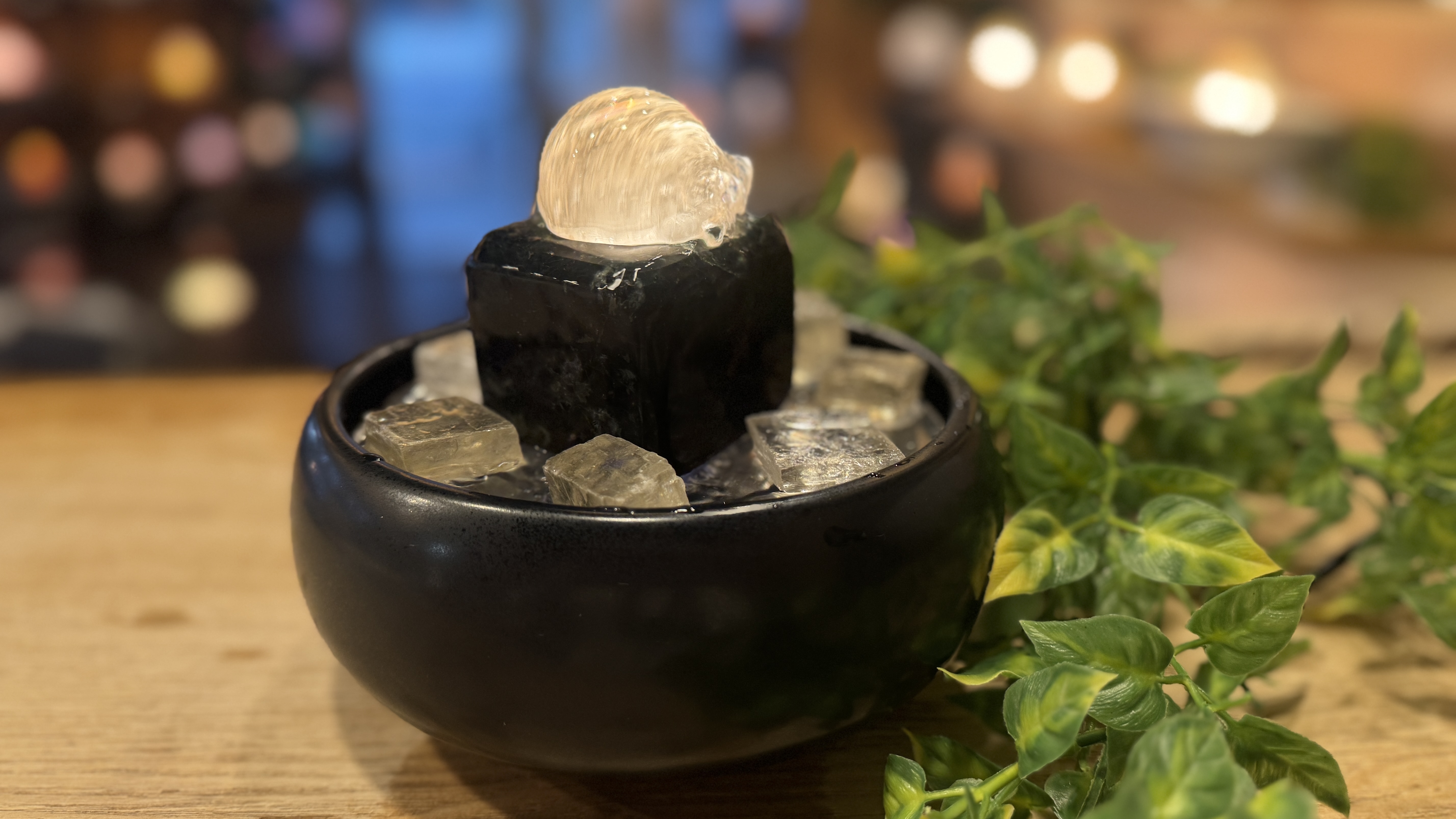 柔らかな黄金の光を放つゴールデンカルサイト球と、深みのある