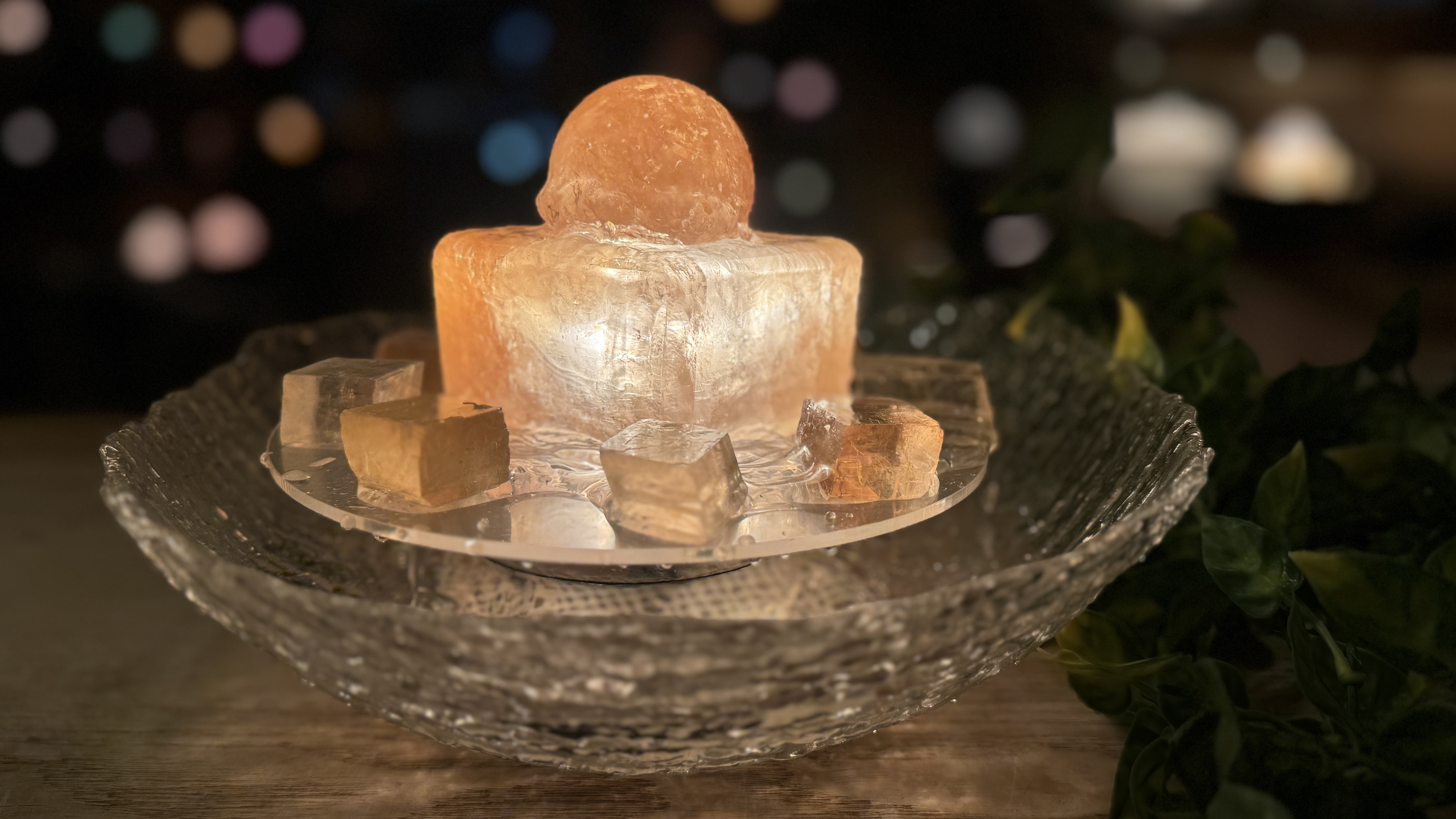 球体、台座石ともにゴールデンカルサイトのファウンテンです。