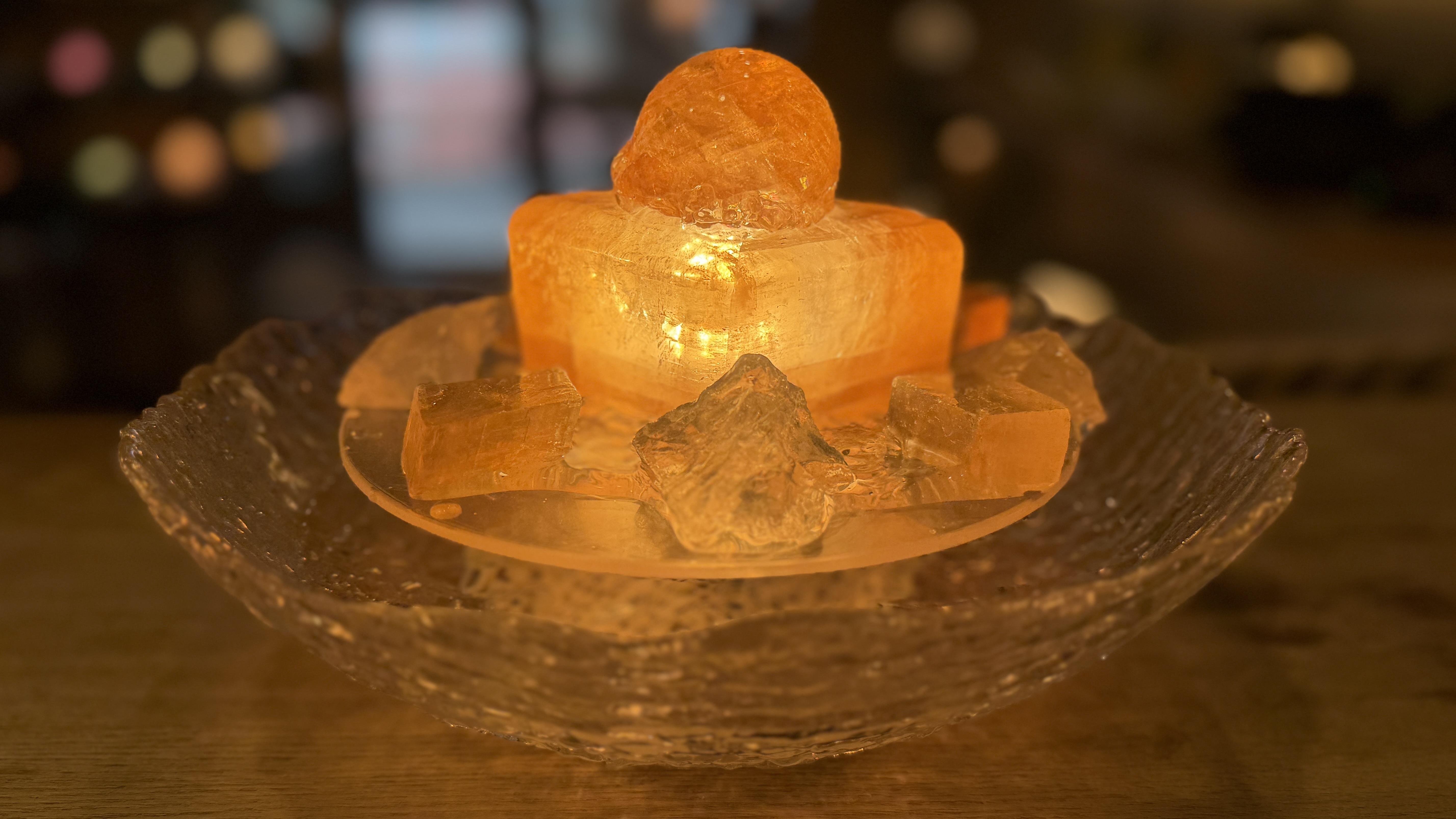 重なり合い、力強い黄金の輝きを生み出すファウンテンです。