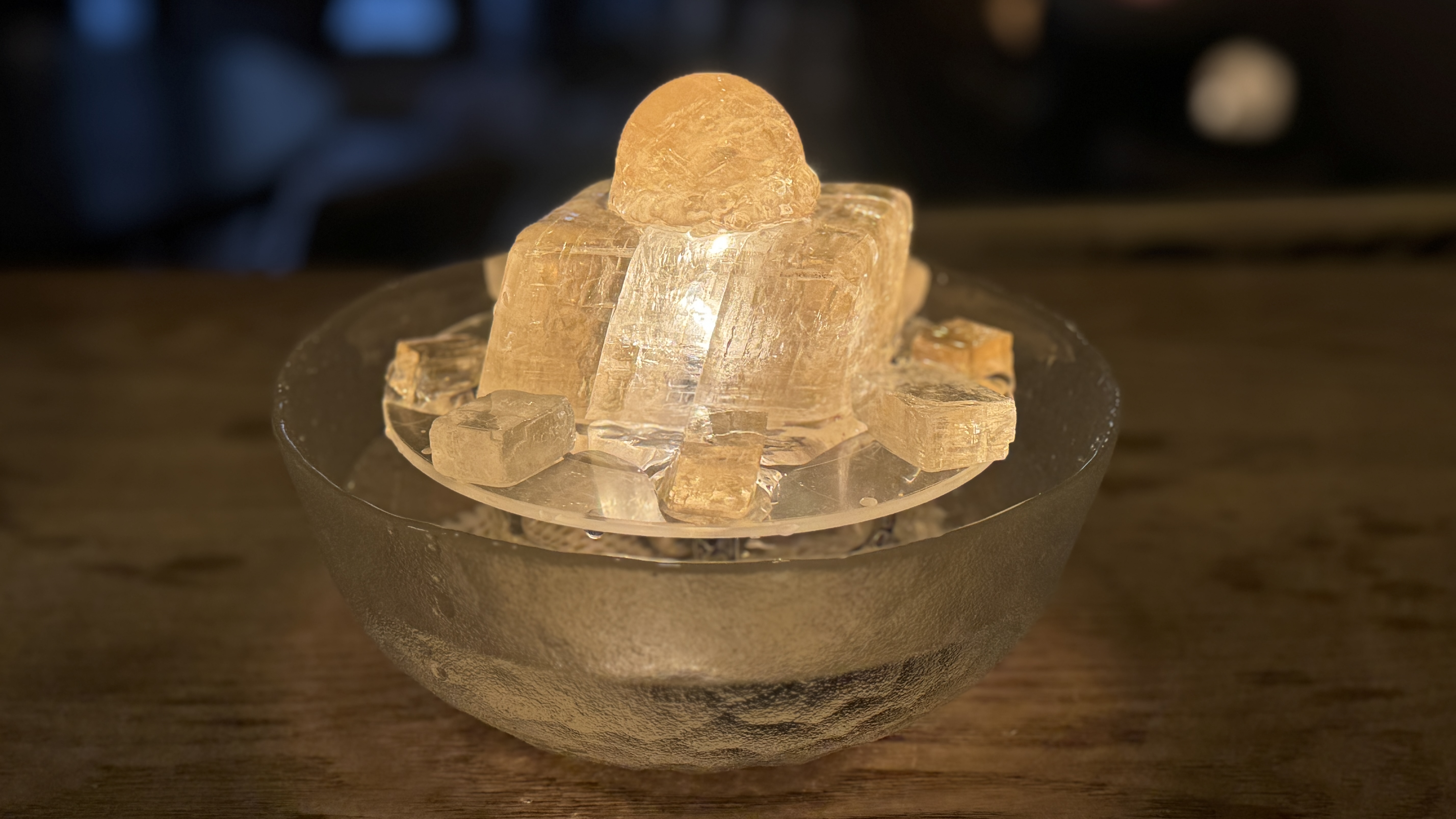 カルサイト球に、さらに輝くスーパークリアーゴールデンカルサイト