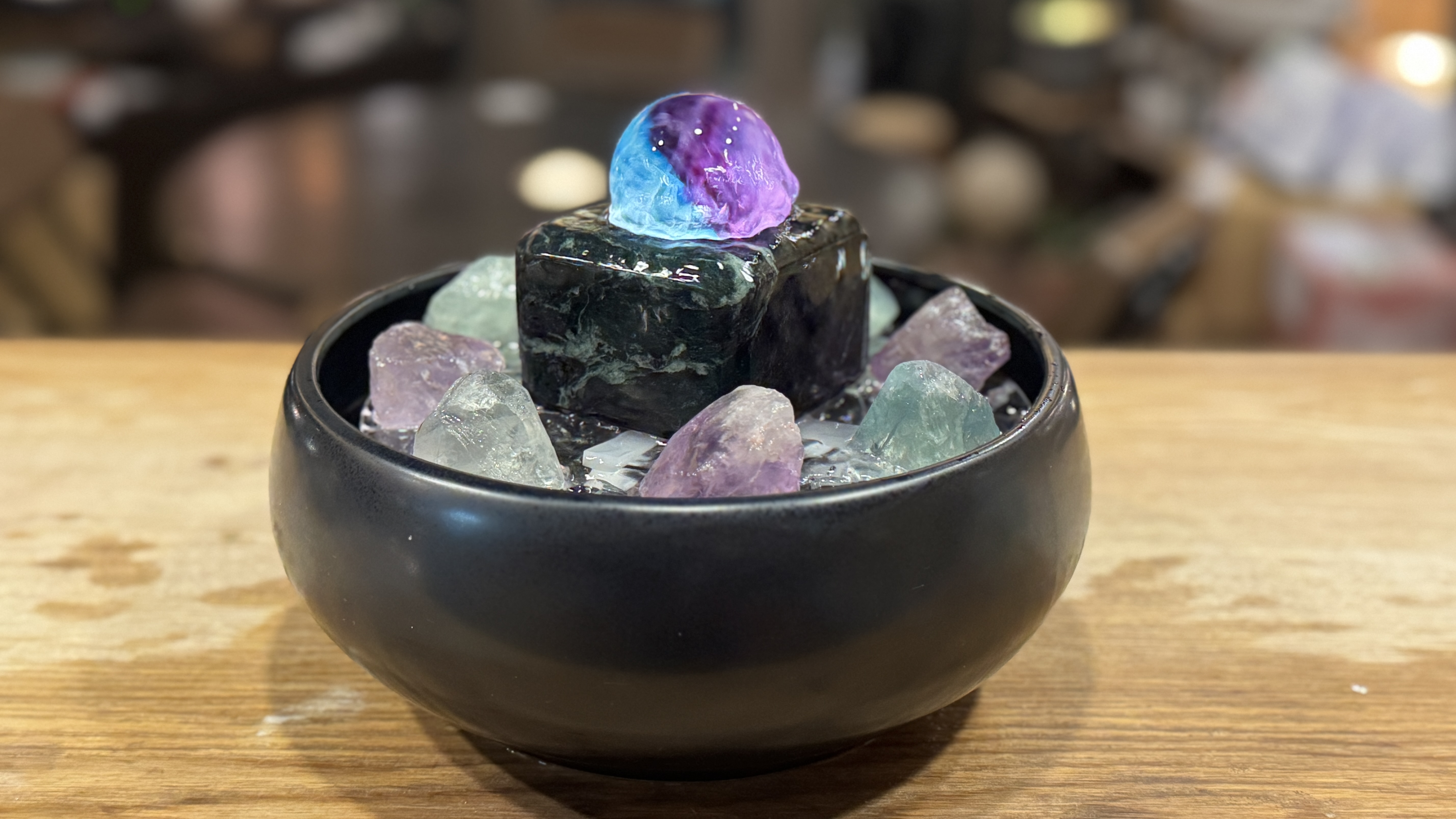 マルチタレントファウンテン【FNH3935】 マルチタレントファウンテン【FNH3935】 (FNH3935) マルチフローライトは内在する才能を引き出してくれる 特別な石です。本来の判断力を静かに呼び戻します。 グリーンマーブルの安定した土台が、気づきを現実へと根付かせ、 流れに振り回されない自分軸を育てるファウンテンです。 (球体の種類)マルチフローライト 4.8cm (台座石の種類)グリーンマーブルスクエア (周りの小石の種類)グリーンフローライト、アメジスト (器の種類)ベーシック黒 φ18 在庫状態 : 在庫有り ¥75,000(税込) 数量