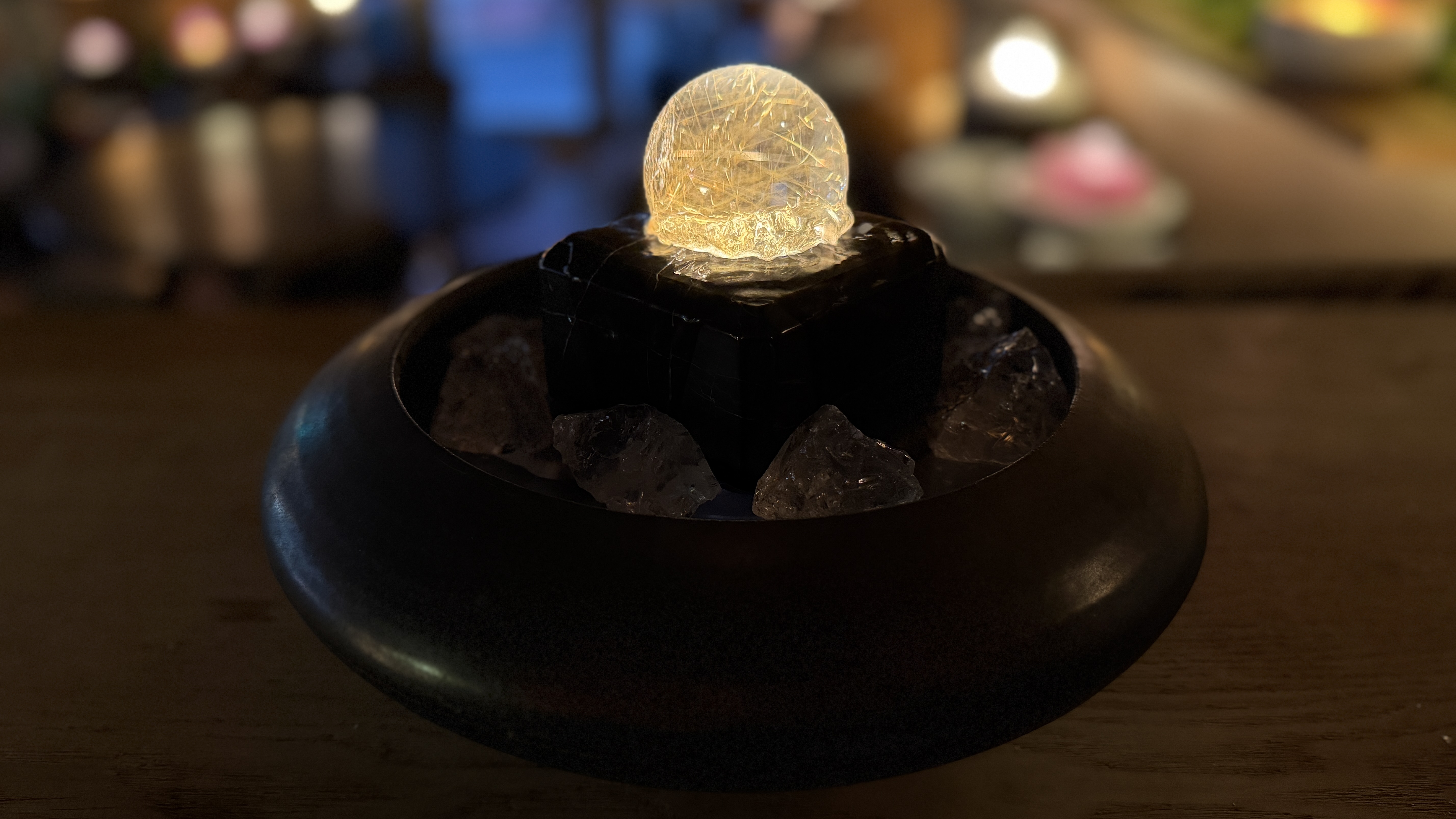 ルチルクォーツスペシャル【RQH3977】 ルチルクォーツスペシャル【RQH3977】 (RQH3977) 大変長らくお待たせしました。5年ぶりの大玉ルチルクォーツ ファウンテンの登場です。金糸の輝きは、豊かさの象徴。 特に金融関係には強さを発揮します。どなたの元へ届くの でしょう。 (球の種類)ルチルクォーツ 5.7㎝ (台座石)大理石 (周りの小石)水晶 (器)コクーン中 黒 在庫状態 : 在庫有り ¥580,000(税込) 数量