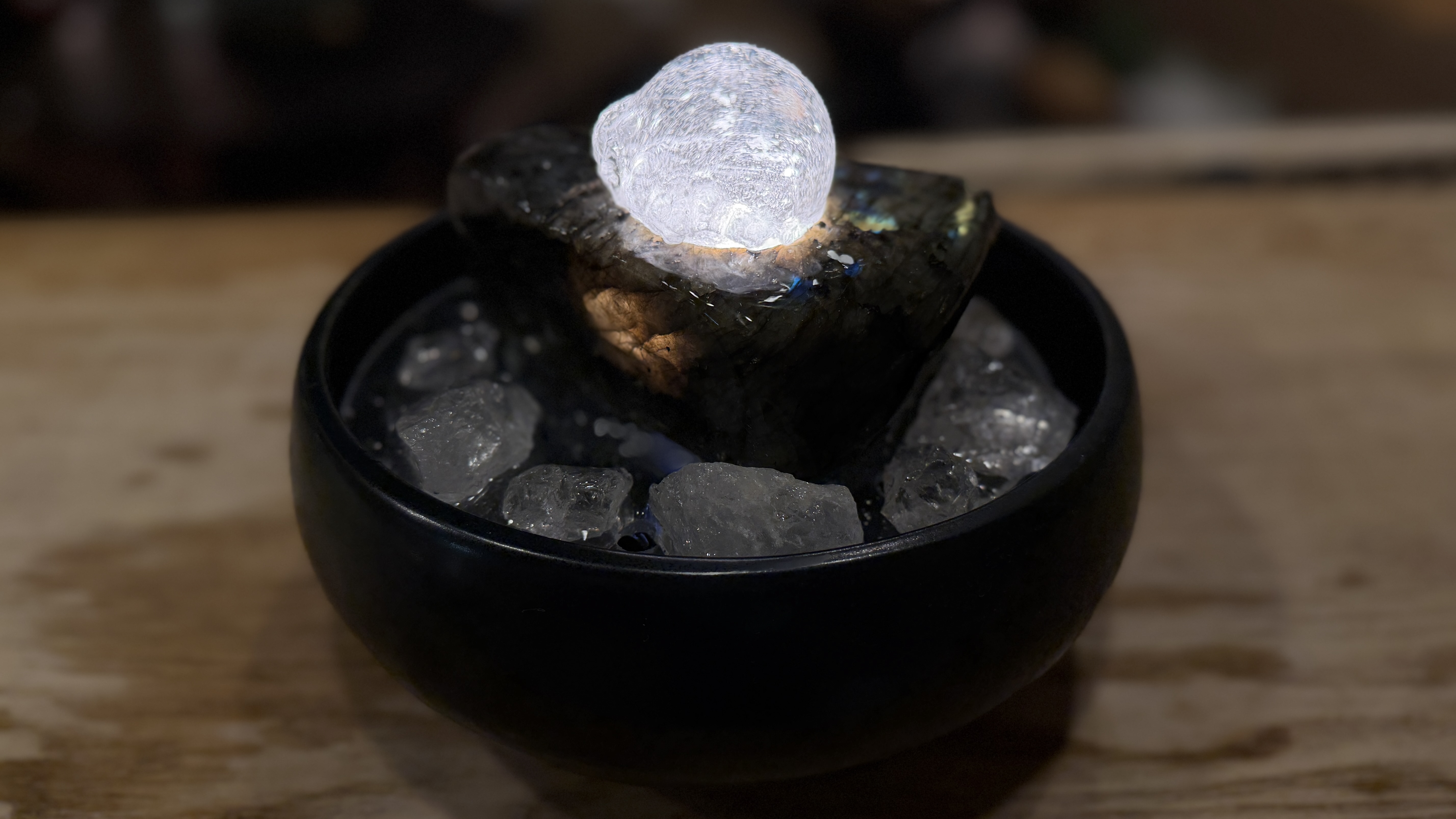 水晶/ラブラドライト【QLH3960】 水晶/ラブラドライト【QLH3960】 (QLH3960) 静かな闇の中に光が浮かび上がるような神秘的で凛とした静寂の泉。 水晶の純粋な透明感がばをクリアに整え、ラブラドライトは 直感力と洞察力を高めます。 内なる可能性に光を当てて、潜在意識を変化のタイミングを 照らしてくれます。 本質を見抜き、自分の進む道を信頼したいときに寄り添ってくれる ファウンテンです。 (球の種類)水晶 4.8㎝ (台座石の種類)ラブラドライト (周りの小石の種類)水晶 (器の種類)ベーシック黒 φ21 在庫状態 : 在庫有り ¥120,000(税込) 数量