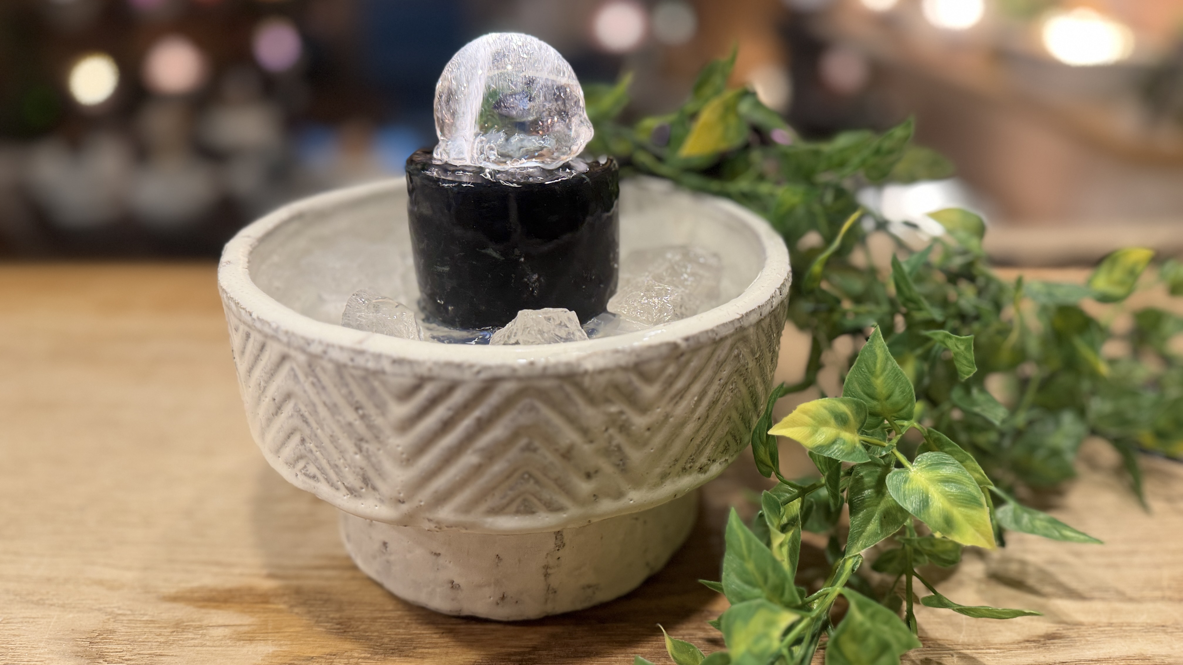 A水晶/グリーンマーブル【QNH3262】 A水晶/グリーンマーブル【QNH3262】 (QNH3262) A水晶球と、グリーンマーブル台座石のファウンテンです。 光を受けてキラキラと輝く水晶球は、澄んだ泉のように 清らかで、周囲のエネルギーを浄化しながら集中力や直感力を 高めてくれる存在。グリーンマーブルは大地と自然を象徴し、 安定をもたらします。透明な輝きと深緑の静けさが調和し、 凛とした佇まいが安心感を育んでくれるでしょう。 (球体の種類)A水晶 4.9cm (台座石の種類)グリーンマーブル (周りの小石の種類)水晶 (器の種類) ナスカ φ19 在庫状態 : 在庫有り ¥58,000(税込) 数量