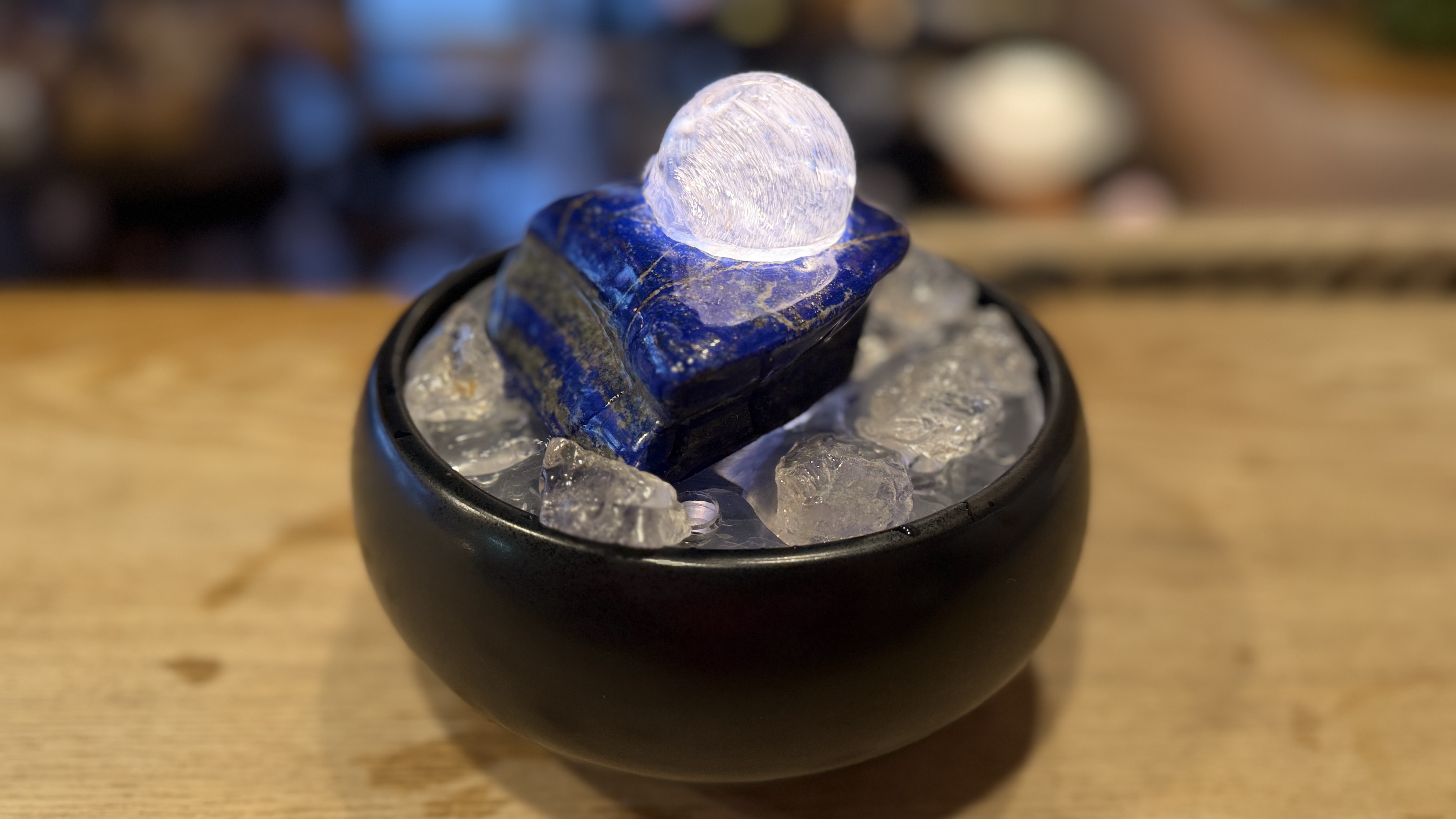 AA水晶/ラピスラズリミニ【QLH4031】 AA水晶/ラピスラズリミニ【QLH4031】 (QLH4031) 深い群青に金色のパイライトが輝くラピスラズリ。古代より「聖なる石」として王や賢者に愛され、真実を見抜く力と直感、表現力を高めると伝えられてきました。邪気を払い、進むべき道を照らす守護石。AA水晶の清らかな光がその力を増幅します。ラピスのファウンテンは数が少なく、その中でもミニタイプは大変貴重なファウンテンです。 (球体の種類)AA水晶 4.2cm(台座石の種類)ラピスラズリ(周りの小石の種類)水晶(器の種類)ベーシックミニ黒 在庫状態 : 売切れ ¥88,000(税込) 只今お取扱い出来ません