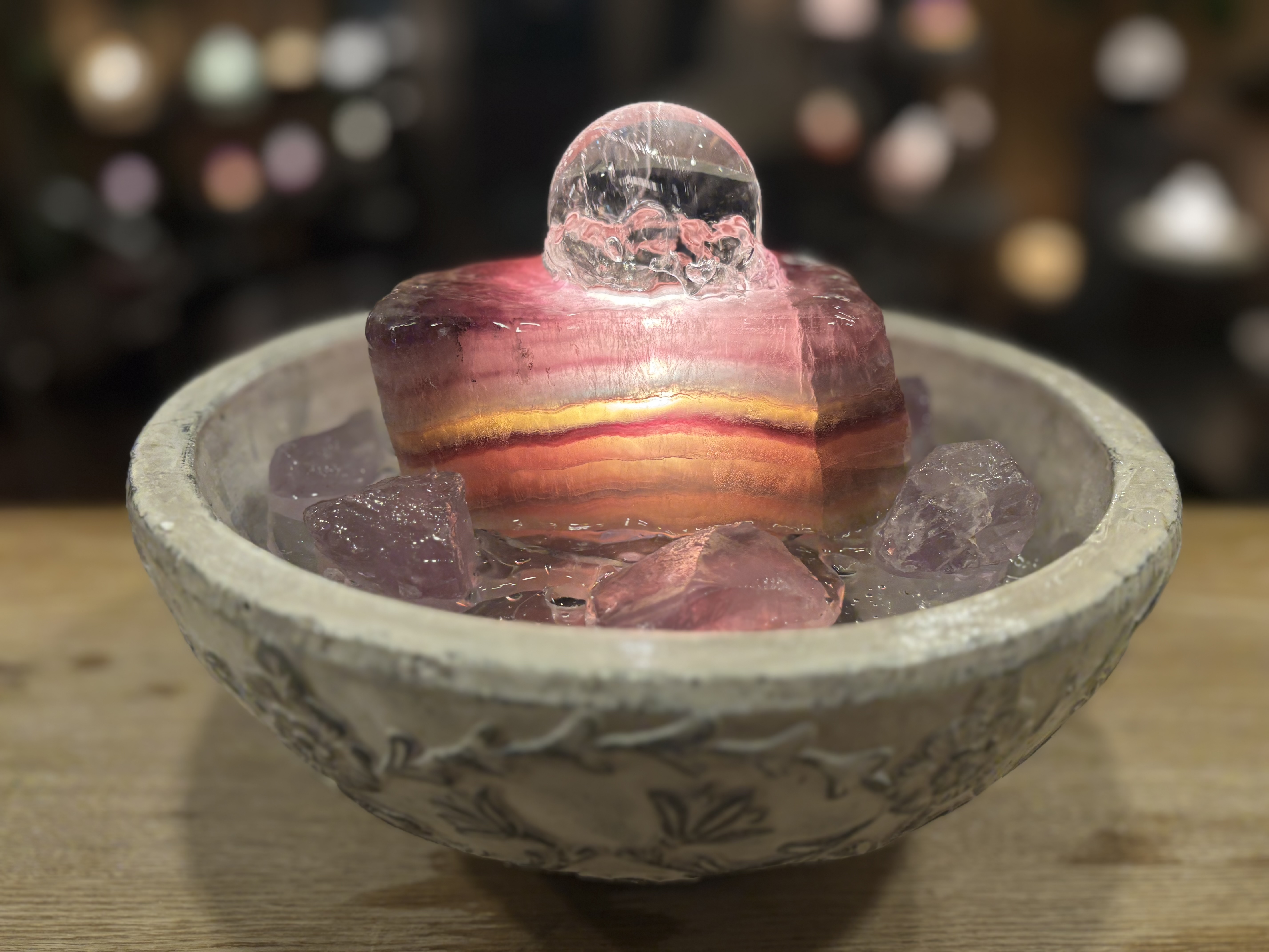 AA水晶/Aレインボーフローライト【QRX3972】 AA水晶/Aレインボーフローライト【QRX3972】 (QRX3972) 澄みきったAA水晶球体と パーフェクトの進化系カラーのAレインボーフローライト台座石 空間やマインドの浄化はもちろん、 このファウンテンから放たれる光は夢実現へと導き、 ポジティブなエネルギーをもらえます。 観葉植物との相性も最高です。 (球体の種類)AA水晶 5.1cm (台座石の種類)Aレインボーフローライト (周りの小石の種類)アメジスト (器の種類)ガーデン φ25 在庫状態 : 在庫有り ¥150,000(税込) 数量